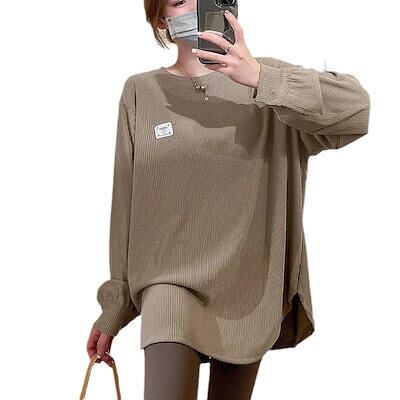 韓国 パーカー Tシャツ レディース 秋冬 新しいスタイル ミドル丈モデル ロングスリーブ トップス ゆったり ボトムシャツ