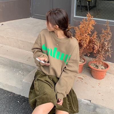 韓国 パーカー スウェット レディース 2024年秋冬新作 気質 ラウンドネック 手紙 長袖 スウェット レディース
