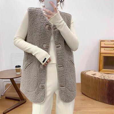 冬アウター ジャケット新作 ラムズウール セミロング ベスト レディース レトロ 気質 2way ベストチョッキー ジャケット
