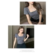 大人気 上品 Tシャツ レディース 秋 冬 秋冬 白 黒 カットソー Tシャツ 無地 クロップドシャツ ショート丈 半袖 ホワイト ブラック グレー カジュアル