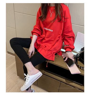 スウェットレディース 秋冬 長袖 スエットシャツ トレーナー おしゃれ 韓国風 フレアトップス 無地
