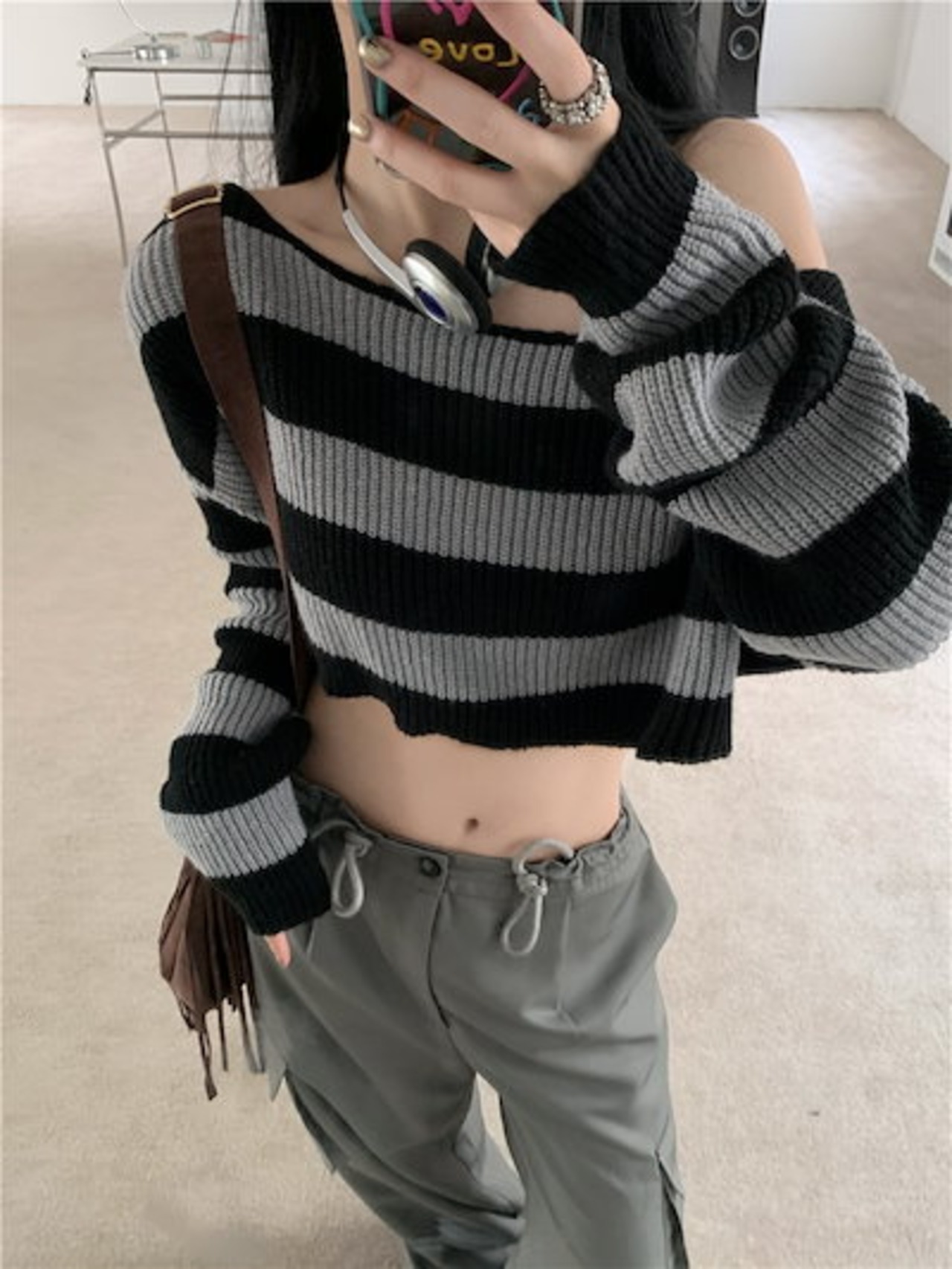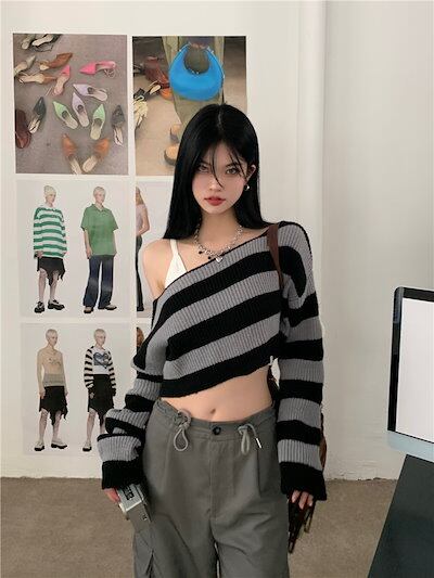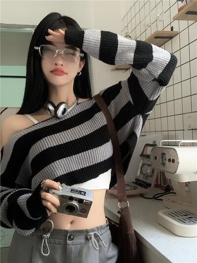 2024春夏 トップス 長袖 ニット レディース ショート おしゃれ カラバリ ハーフ カラー スタイルアップ プル色っぽ 女っぽ カジュアルきれいめ大人ネックファッション加工フェミニン秋冬系
