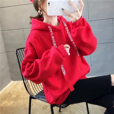 スウェット パ一力一トレンドはビッグロゴ 秋スウェット冬韓国ファッション パーカー レディース 裹起毛ゆったり百掛けトップス