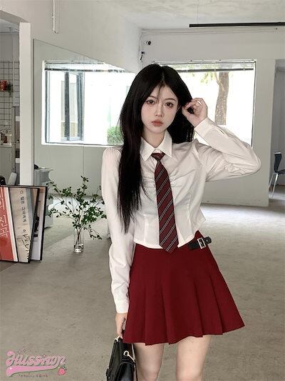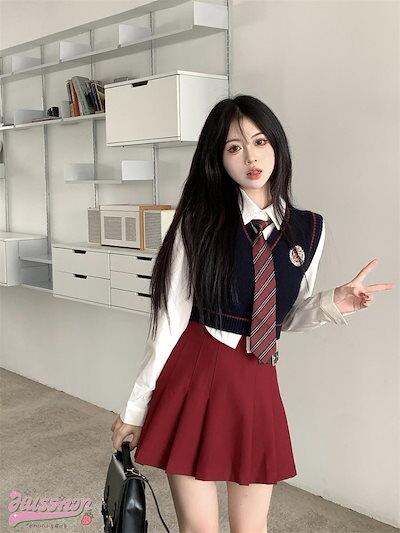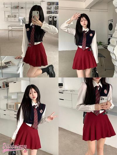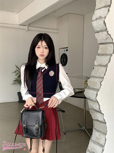 「単品注文」甘め 財閥お嬢さん 甘辛MIX セットアップ ニットベスト 長袖 シャツ トップス ミニ プリーツ スカート ネクタイ カジュアル レディース ファッション jk 上下 秋冬 春 フレンチ