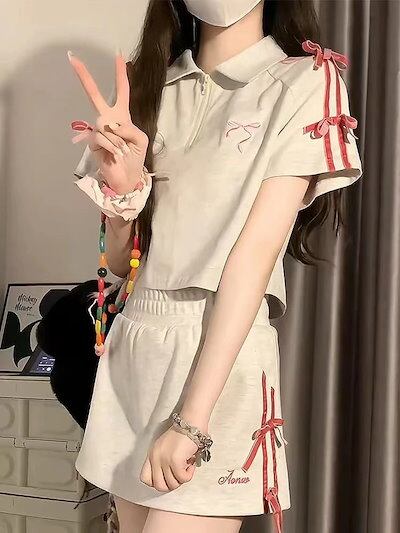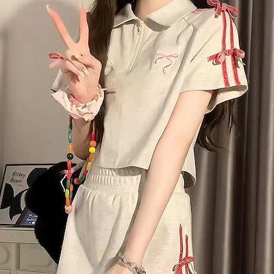 涼しく楽ちんセットアップ 夏服 レディース 上下セット セットアップ 韓国ファッション新作 韓国セットアップ レディース 夏 ジャージ スポーツウェア 半袖 スカート 韓国ファッション ポロシャツ ハ