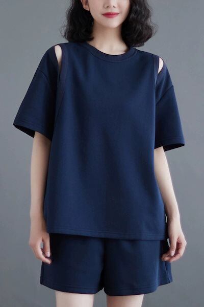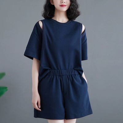 涼しく楽ちんセットアップ スウェット上下セット セットアップ 大きいサイズ レディースウェア/ストラップレス半袖トップス/ショーツ/ツーピースセット