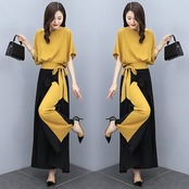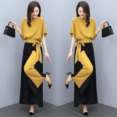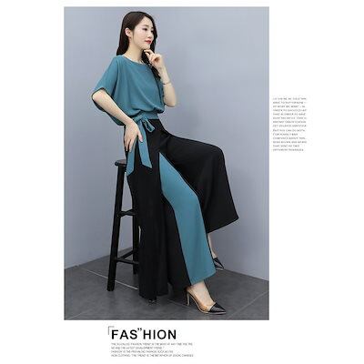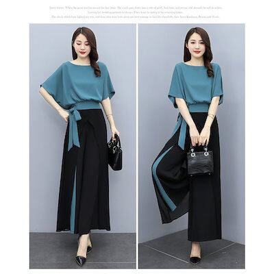 セットアップ レディース 春夏 オシャレセットアップ 半袖ブラウス 九分丈ワイドパンツ シフォン上下セット 韓国風 通勤OL 30代40代 50代大きいサイズ