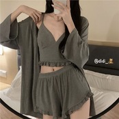 響かない!シームレス韓国ファッション カップ付きインナーパジャマ ルームウェア 上下セット 三点セットレディース 部屋着 寝間着