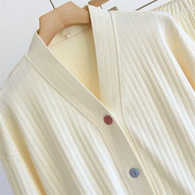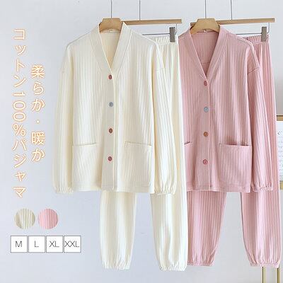 パジャマ ルームウェア 綿100% 厚手 レディース 上下セット 2点セット 長袖 前開き Vネック ロングパンツ コットン パジャマ 厚手 暖かい 春秋冬 部屋着 ホームウェア 寝間着 ナイトウェア