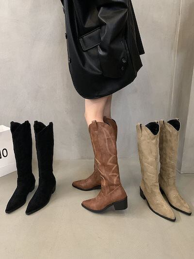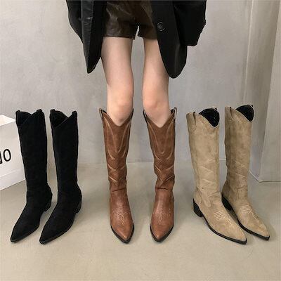 【2枚購入で 2oo円OFF! 】新作 レディース ブーツ フラットシューズ 騎士ブーツ 美脚 靴 厚底ブーツ シューズ ポインテッドトゥ 厚底シューズ ロングブーツが復活! 福袋