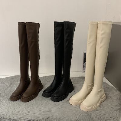 【2枚購入で 2oo円OFF! 】新作 レディース ブーツ ニーハイブーツ おしゃれ ラウンドヘッド 騎士ブーツ 美脚 快適 靴 厚底ブーツ シューズ 厚底シューズ ロングブーツ 福袋