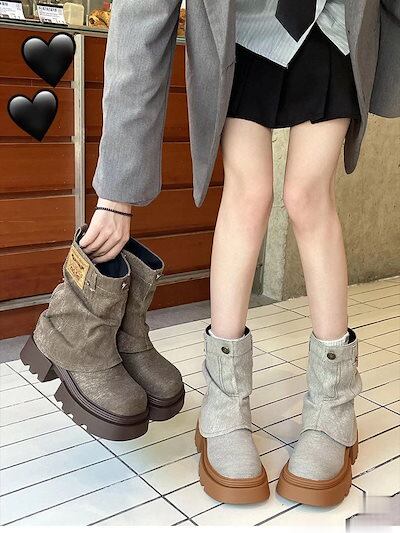 【2枚購入で 2oo円OFF!】人气新作ブーツ 秋の新作 厚底 ファッション ショートブーツ レディース美脚 通勤靴 疲れない 痛くない 走れる 韓国ファッション