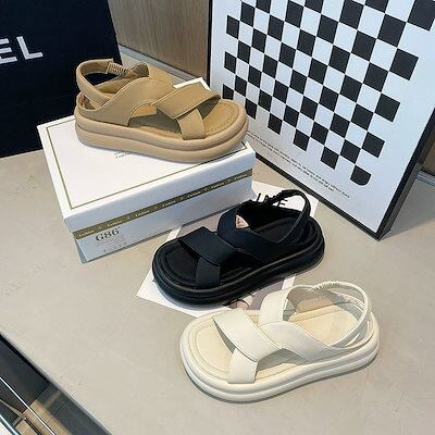 厚底ローマンサンダル女性2024新しい夏百疲れない足マフィンビーチサンダル