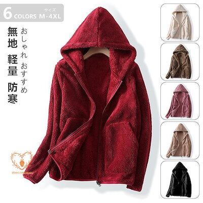 ボア パーカー ジャケット レディース フリース ブルゾン アウター カーディガン 秋 冬 ジップアップ フード付き ルームウェア アウトドアウェア 大きいサイズ