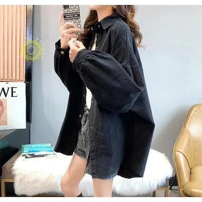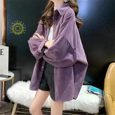 シャツ 無地 レディース 長袖 ブラウス シャツ トップス アウター カーディガン 大人 春 夏 秋 新作 大きいサイズ 体型カバー カジュアル コーデュロイ ロング