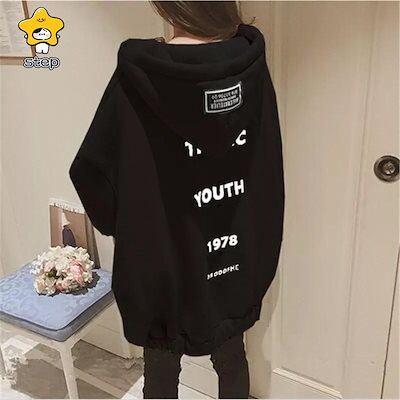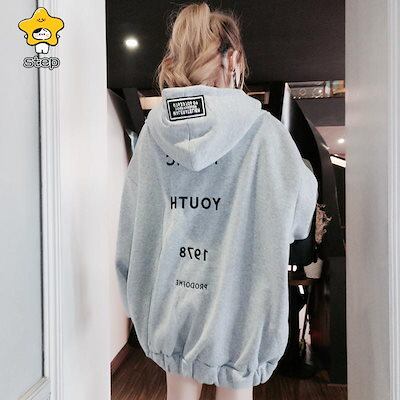 パーカー レディース 冬 大きめ トップス 裏起毛 ビッグシルエット フーディー ロゴ カジュアル