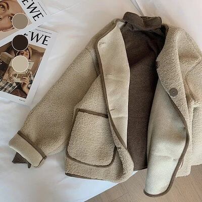 【 3日で出荷 】冬アウター ラウンドネック ラムウール コート レディース 2024 秋 ルーズ シャンブレー トップス