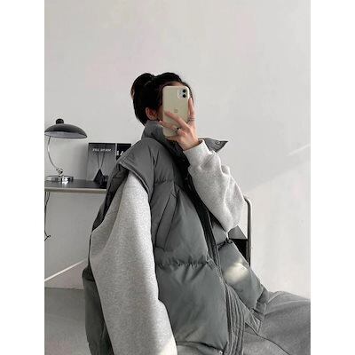 韓国ファッション中綿ジャケット極暖 ジャケットベストレディース 秋冬 厚手 冬アウター ベストチョッキーアウターノースリーブ 厚手トップスシンプルダウンベスト ベスト レディース 冬アウター