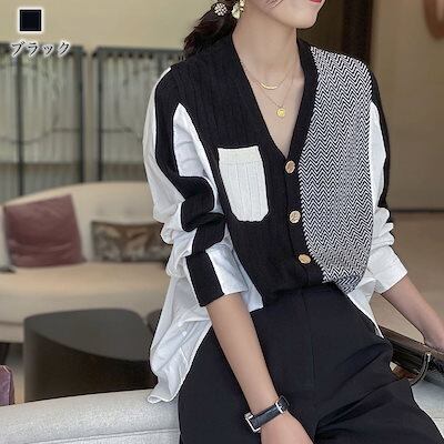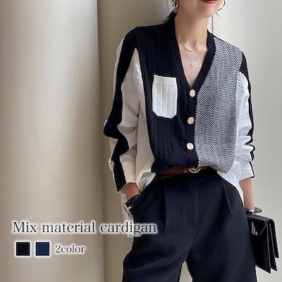 カーディガン レディース 異素材カーディガン 人気 きれいめ 秋 ロング ブラック ニット ゆったり Vネック 冬 ジャケット おしゃれ 春 暖かい ショート丈 あったか ブランド 大きいサイズ 丸首