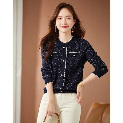 人気なリブニット 秋冬定番 カーディガン 韓国ファッショレディース シンプル 通勤 ニットカーディガンセーター アウター 百掛けカジュアル