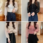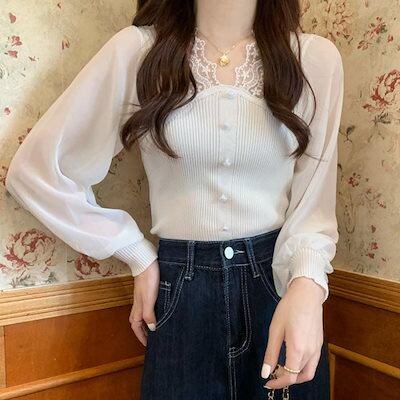 韓国ファッション秋冬人気カシミヤタッチ 異素材ニットトップス レディース 韓国 百掛けトップス ニットインナーVネックベーシックニットゆったりスウェット 長袖 無地リブニット