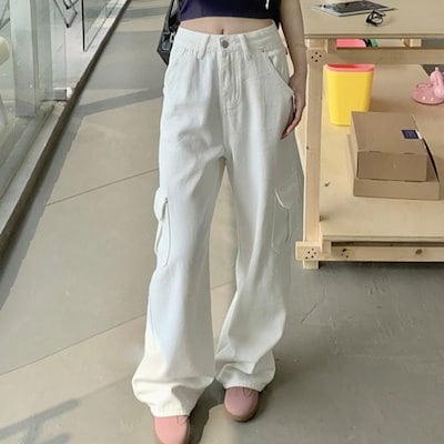 2024 春夏パンツ デニム ジーンズ ワイド ストレート ハイウエスト 脚長効果 美脚効果 細見え ポケット付き 春 白 カジュアル 韓国ファッション レディース お出かけ