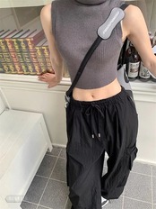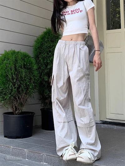 2024 春夏 ボトムス ドロスト ドローストリング ズボン ウエスト調節 カーゴパンツ ルーズ カジュアル系 ゆったり 美脚 脚長 スタイルアップ