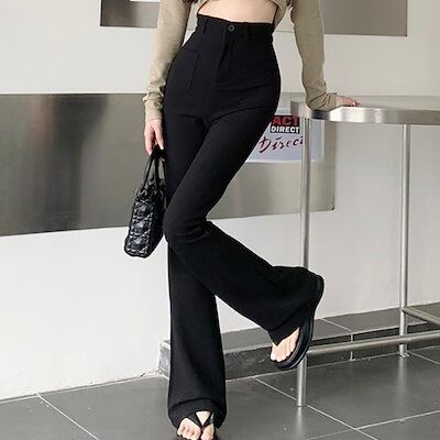 2024 春夏パンツ モップパンツ ワイドレッグ スリム ハイウエスト 脚長効果 美脚効果 細見え 春 黒 茶色 韓国ファッション レディース お出かけ