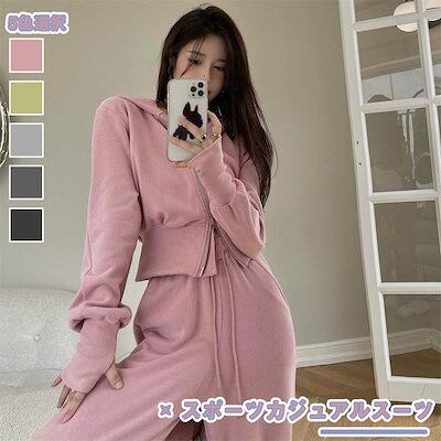 【 迅速な出荷 】韓版 無地 長袖 セットアップ トップス+ズボン 上下2点セット ワイドパンツ パーカー アウター 秋冬 体型カバー 着痩せ 大きいサイズ 上下セット
