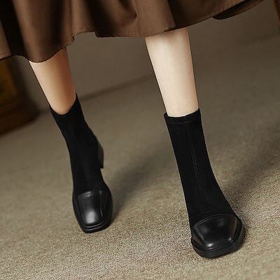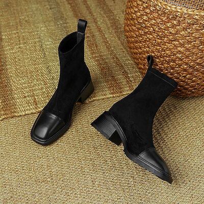 】新作 シューズ レディース スエード調靴 ウエスタンブーツ スエード ショット丈ブーツ 太ヒール ショートブーツ 裏ボアタイプ 2oo円OFF! 【2枚購入で 黒 気質 福袋 フラット ーシューズ