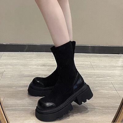 】新作 革靴 2oo円OFF! レディース ローヒール 太ヒール 黒 福袋 ミドルヒール 【2枚購入で ブーツ ショートブーツ ハイヒールブーツ マーディンブーツ 厚底靴
