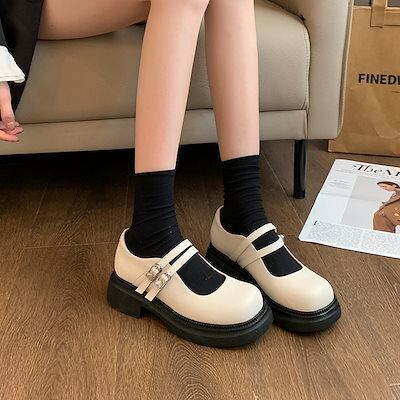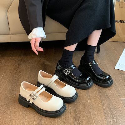 厚底メリージェーンレディースシューズ スリッパ カレッジスタイルの浅い口の靴 大きいサイズの女性の靴