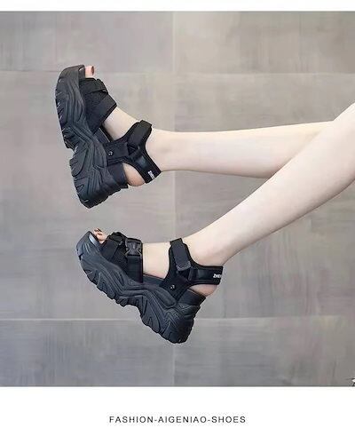 2024 春夏 シューズ 身長アップ 厚底 快適です ベルクロテープ ミュールサンダル レディース 美脚 脚やせ 歩きやすい