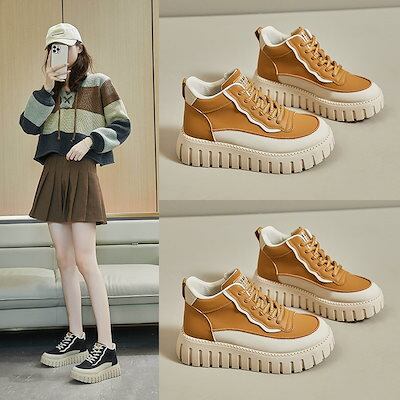 超人気 厚底シューズ 秋冬 新作 ハイカット カジュアル通学通勤 厚底 松?靴 百掛け 美脚 身長アップ 4.5cm