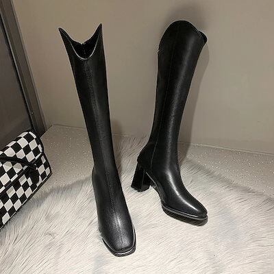 ロングブーツが復活! 韓国ファッション 秋冬 裏起毛ロングブーツ 厚底 靴 ブーツ レディース 太ヒール 着痩せ ショートブーツ 美脚 ニーハイブーツ