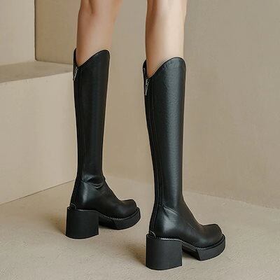 ロングブーツが復活!韓国ファッション ロングブーツ 厚底 ブーツ レディース 靴 美脚効果 ブーツ 着痩せ 百掛け ロングブーツ