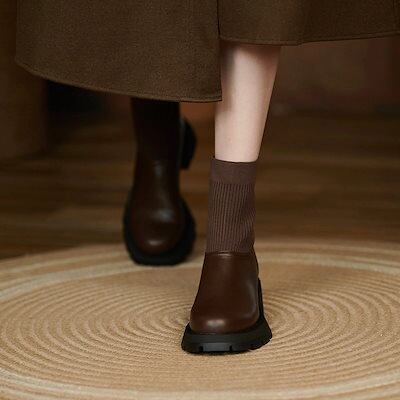 ニット ショットブーツ 伸縮性あり ソックスブーツ レディース 厚底 靴 ムートンブーツ