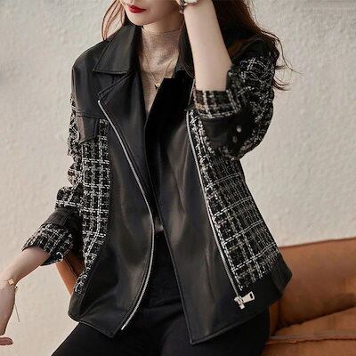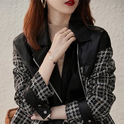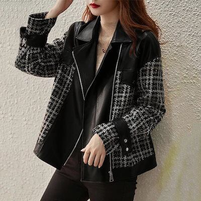 小香風 切り替え PU 皮 ジャケット 秋冬新作 レディースファッション アウター ゆったり 百掛け カジュアルコート 体型カバー
