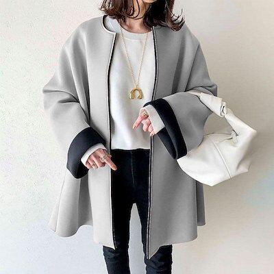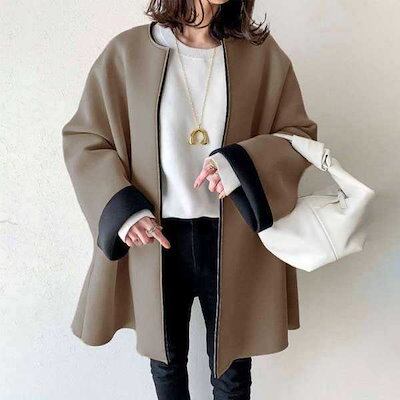 韓国ファッション ゆったり レトロ コントラストカラー ジャケット 秋冬 小香風 レディース トップス