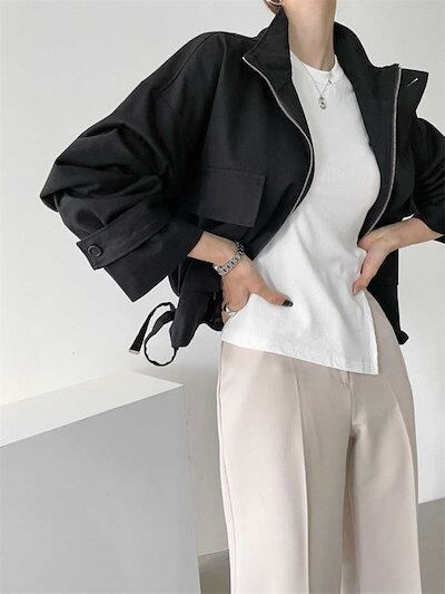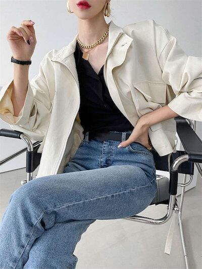 ジャケット レディース ショート丈 春 秋 ショートジャケット トップス 長袖 アウター フリル 羽織り ライトアウター ブルゾン コート 体型カバー お洒落 カーディガン カジュアル ポケット付き