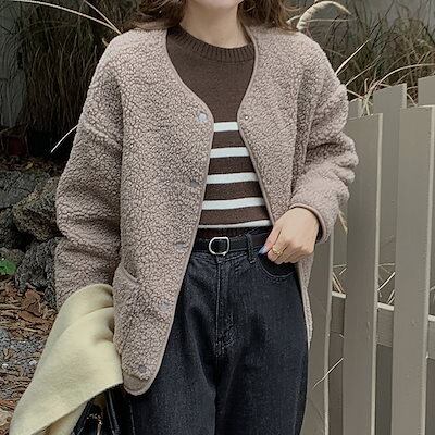 ラムズフリース 冬アウター カーディガン コート 綿服 厚手 ジャケット 高級感 トップス 長袖ブラウス レディース服