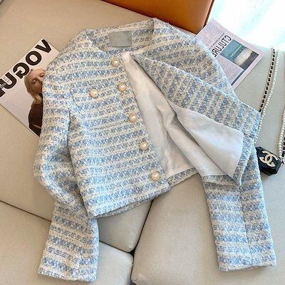 ニューデザイン ブルー ショット丈 ジャケット レディース 春秋 フランス 気質 ラシャ パール