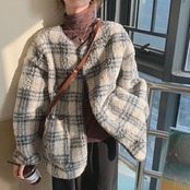 秋冬新作 チェックコート レディース レトロ カーディガントップス 保温 テーラードジャケット
