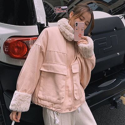 秋冬 綿入れ 裏起毛 アウター レディースファッション ショート丈 中綿ジャケット 韓国 ゆったり カジュアルコート[5カラー]