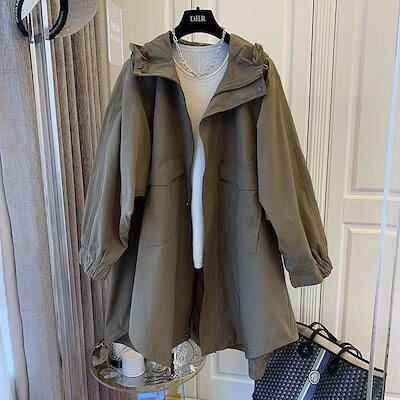 英?風 トレンチコート レディース 秋 アウター 日系 ゆったり フード付きパーカー セミロング ブルゾン