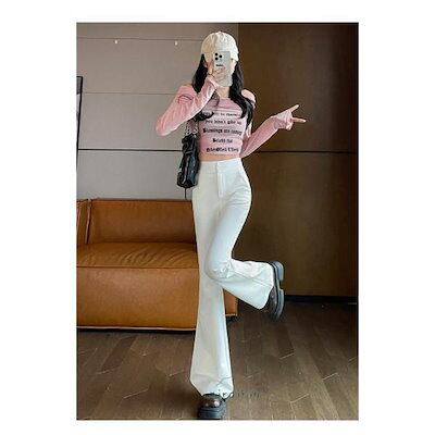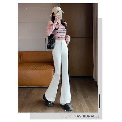 フレアパンツ スラックスパンツ レディース スリム ロングパンツ ボトムス 長ズボン ハイウエスト 美脚 脚長 2024春新作 ラッパ 韓国風 ビジネスフォーマル