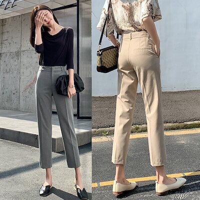 テーパードパンツ レディース ボトムス スラックス 無地 ビジネス ハイウエスト カジュアル 着痩せ 秋服 結婚式 卒業式 面接 おしゃれ エレガント