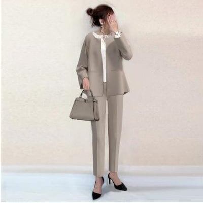 スーツ レディース 2点 洗える 着回し ジャケット ノー フォーマル テーパードパンツ 入学式 スーツ 母親 パンツスーツ 卒業式 卒園式 ママ