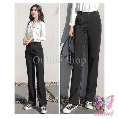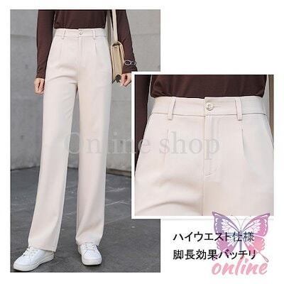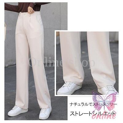 スラックス レディース ストレートパンツ オフィス 秋 長ズボン 体型カバー ハイウエスト ロングパンツ ゆったり 春 スーツパンツ