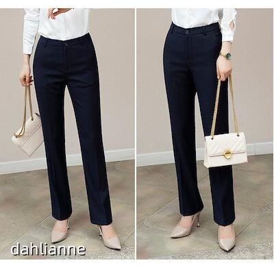 スラックス ビジネス フォーマル パンツ レディース スーツパンツ ストレートパンツ 美脚 オフィス パンツ ストレート ロング 黒
